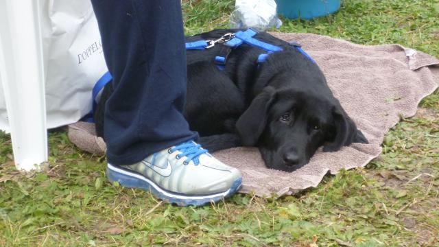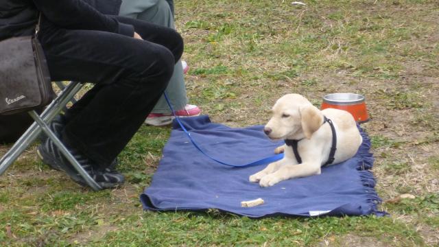 Ettore e l'esercizio della ciotolaLa seconda lezione si è svolta all'aperto, a cause delle raffiche di vento abbiamo dovuto rinunciare ai nostri gazebo. I cuccioli erano lo stesso a loro agio, nonostante la pioggia che a tratti si è fatta intensa.