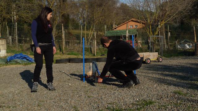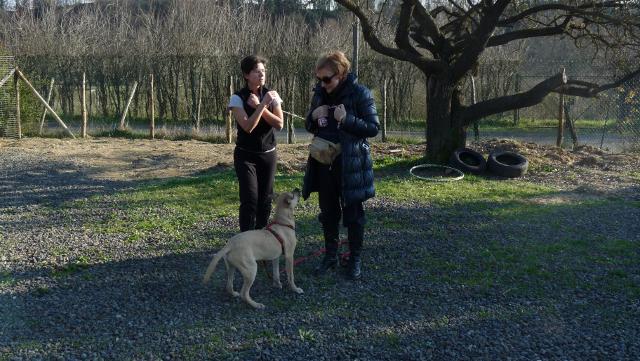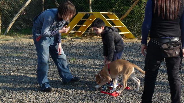 I cuccioli sono ormai a metà del loro percorso, sempre meglio integrati nelle loro famiglie, sempre più attenti ai loro accompagnatori e capaci di mantenere la concentrazione più a lungo. Questo ci permette di rendere le lezioni quasi esclusivamente pratiche. Ieri, sabato 16 febbraio, abbiamo affrontato: