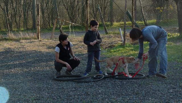 3. un primo approccio alla MobilityDog – i cuccioli hanno preso un primo contatto con alcuni attrezzi: la pedana sui bidoni, il saltino, il carretto e copertoni di ruote. La Mobility, con attrezzi codificati e non, aiuta a migliorare la relazione, la comunicazione da parte del proprietario e la fiducia del cane nel conduttore, favorisce l'autoaccreditamento del cane e migliora la propriocezione, la motricità, l'equilibrio, la destrezza, la capacità ad esplorare e risolvere problemi. Nei prossimi incontri i cani avranno l'opportunità di approfondire la conoscenza di questi attrezzi e di approcciarsi ad altri.