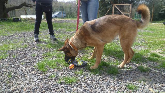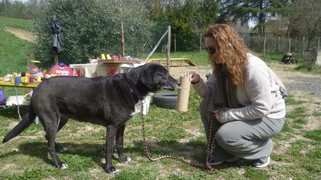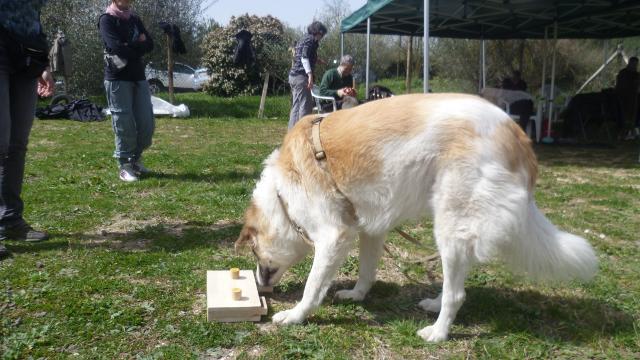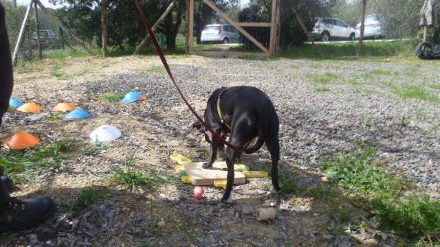 Sono stati affrontati sia teoricamente sia sperimentati in pratica il tira-e-mola, la ricerca olfattiva e la Mobility Dog®, ma la parte principale della giornata è stata impiegata sperimentando vari giochi di problem solving. Questo ci ha permesso di verificare nella pratica del gioco con il cane cosa significhi allargare il piano prossimale d'esperienza e proporsi come mediatore delle conoscenze del nostro compagno a 4 zampe.