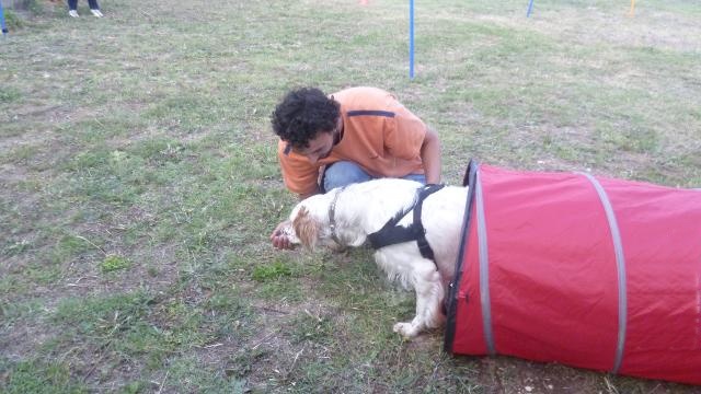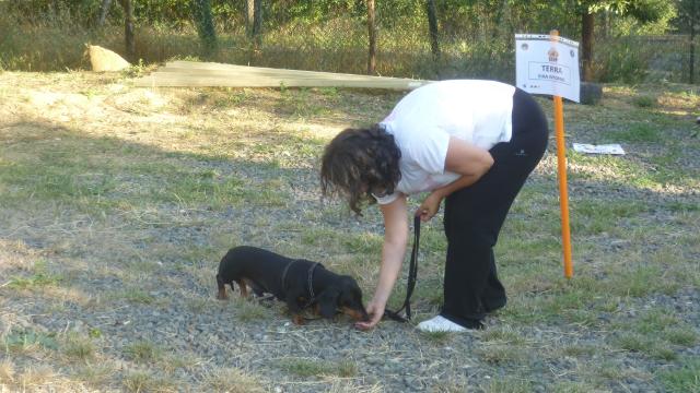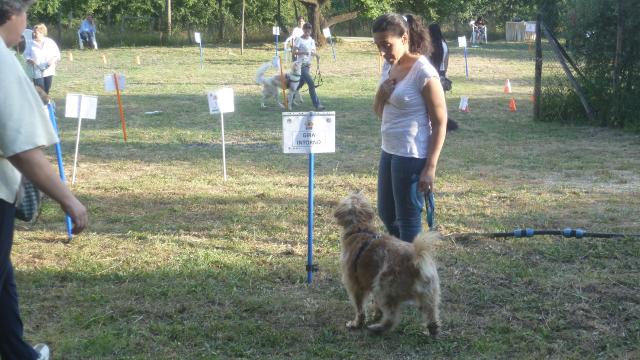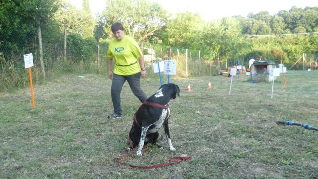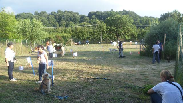 Alcuni cani all'inizio hanno faticato a concentrarsi ma poi tutti sono riusciti a lavorare bene nonostante i tanti cani presenti e le persone in movimento accanto a loro.