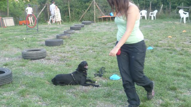Durante la serata si sono alternati esercizi propedeutici alla gestione del guinzaglio e giochi di verifica, per concludere con due percorsi riepilogativi di quanto fatto in entrambi i laboratori svolti fin qui.