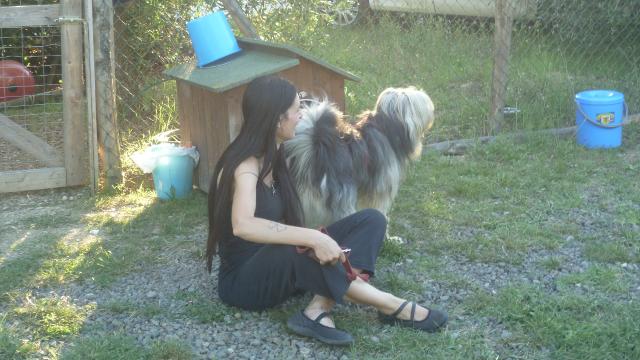 Daniela con Zara – volevo farla entrare soltanto dopo che i cani più giovani e “corridori” si fossero acquietati un po', visto la sua tendenza a rincorrere.