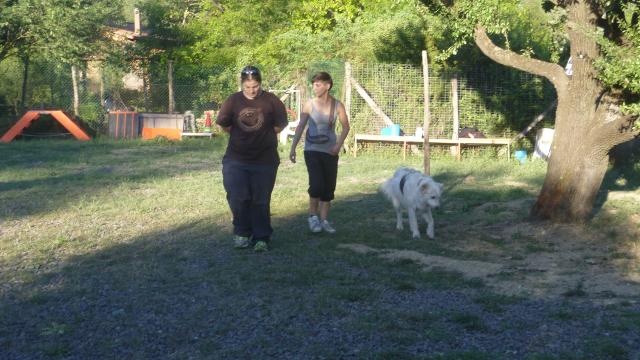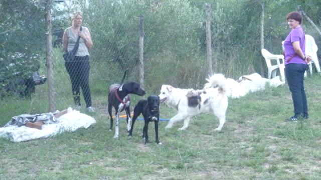 Come previsto all'inizio Mila e Dea si sono messe a correre felici alla ricerca di qualcuno con cui giocare, appena si sono calmate un po' abbiamo fatto entrare Zara che è andata immediatamente vicino alla recinzione per inseguire le macchine che passavano lungo la strada. Ho chiesto subito a Valentina e Marco di avvicinarsi in modo che i nostri cani “agevolatori in erba” potessero valutare la situazione ed effettivamente il loro intervento ha avuto successo aiutando Zara ad uscire elegantemente dalla situazione e tornare al richiamo di Daniela.
