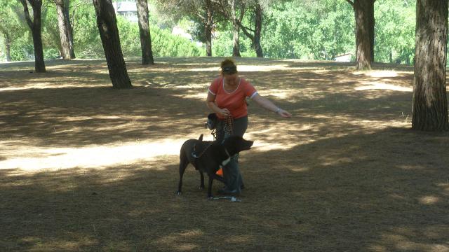 La giornata di esercitazione si è chiusa con un'ulteriore verifica che l'abilità a spostare il cane fosse acquisita da parte di tutti i conduttori, i binomi sono stati invitati a camminare lungo un vialetto e ad incrociare in rapida successione quattro persone che camminavano, ad ogni incontro il proprietario doveva gestire l'incrocio, effettuando con il proprio cane una ampia curva oppure far cambiare lato al cane utilizzando le tre modalità apprese.