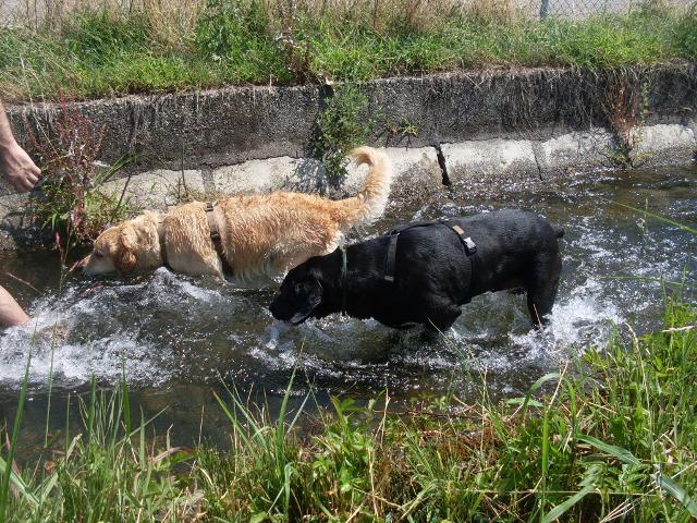 Dopo circa due ore di passeggiata riprendiamo il sentiero che ci porta verso casa ma decidiamo di fare una piccola deviazione per rinfrescarci un po', c'è chi decide di fare il bagno nel canale e chi si scava una tana al riparo dal sole. Alla fine ci tocca aspettare che Zoe sia ben asciutta per ripulirla prima di tornare a casa!