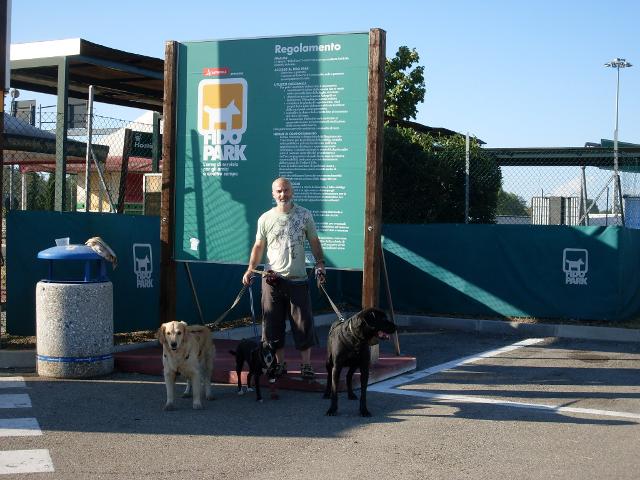 A questo punto non abbiamo altro da fare al nord e il giorno seguente si riparte per Roma. Forse perché la mattina abbiamo fatto una passeggiata meno interessante del solito, forse perché non hanno voglia di tornare a casa, i cani in macchina sono un po' irrequieti e all'altezza di Modena nord facciamo già una sosta. Si rivela una scelta azzeccatissima, ci fermiamo per circa un'ora in un'area attrezzata per i cani!